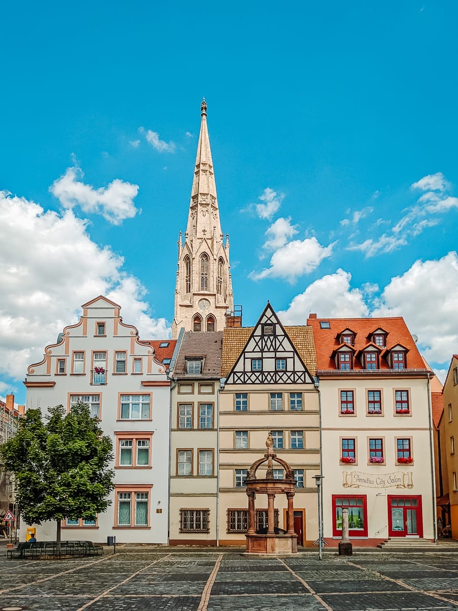 Die Merseburger Altstadt ist absolut bezaubernd und lädt nur zum Erkunden ein. Im Zentrum befindet sich der historische Markt, der als zentraler Platz der Stadt gilt und von beeindruckenden Bauwerken umgeben ist. Besonders sehenswert ist der Brunnen auf dem Marktplatz, der als bedeutendes Element der Stadtgeschichte und als Symbol für das mittelalterliche Erbe Merseburgs gilt.