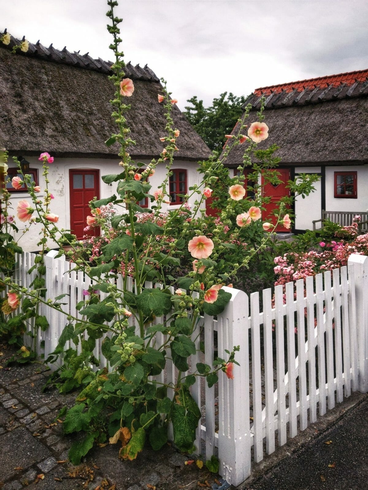 Wir erreichen Gilleleje am späten Nachmittag. Dank des Tipps von Vicky verlassen wir den Radweg 47, biegen hinter der Kirche rechts ab und schlängeln uns durch den historischen Teil von Gilleleje, dann am Hafen vorbei bis zu unserem Hotel. Uns fallen sofort die schönen Stockrosen auf, die wir hier vor fast jedem Haus sehen. Typisch Dänisch, wie wir später erfahren.